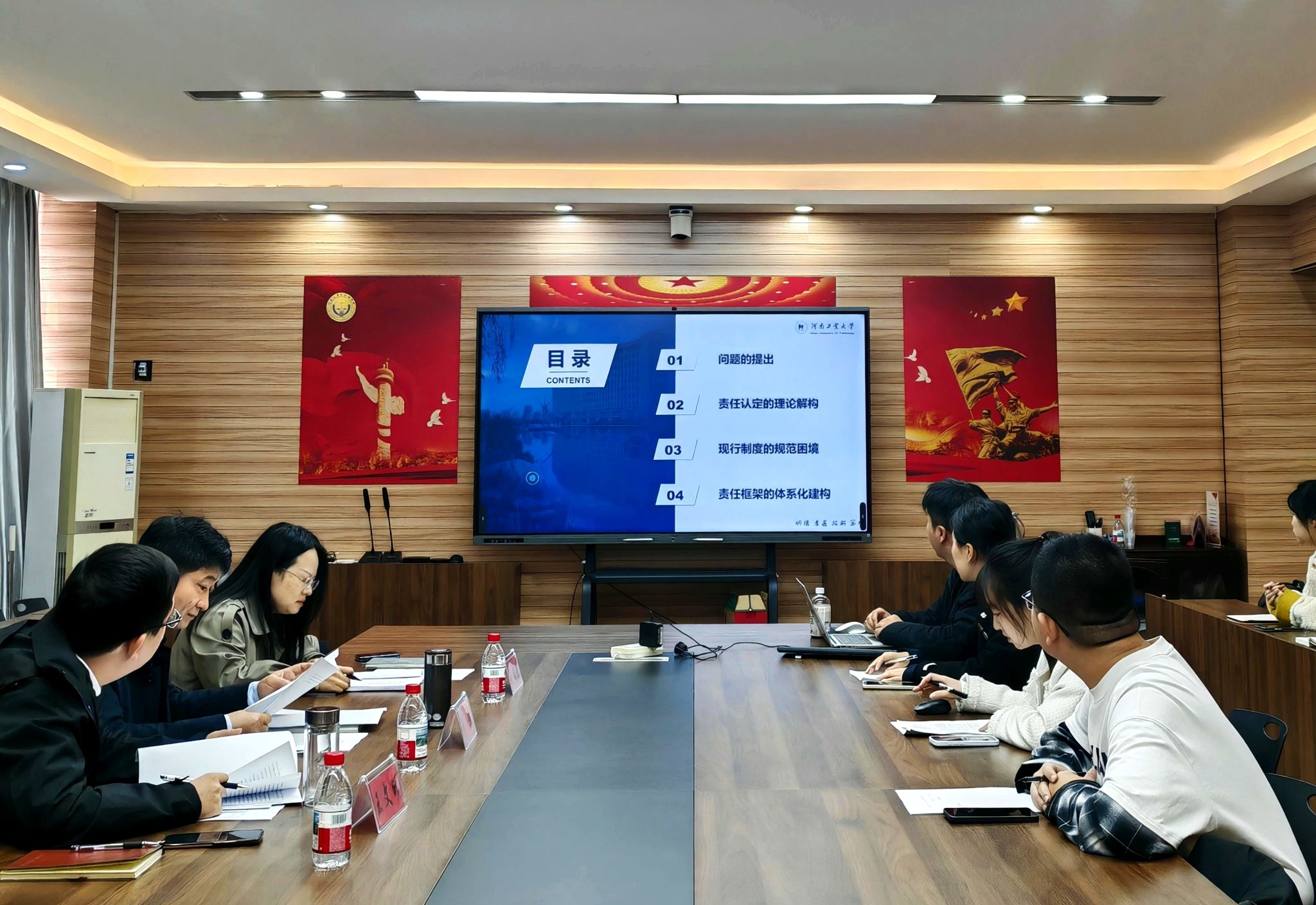 在3424会议室成功举办“法研论坛”第17期学术研讨会。本次会议邀请硕士研究生导师许文教授、硕士研究生导师南海燕副教授、硕士研究生导师王文明博士担任评议人。2024级法学硕士研究生涂思雨、陈怡帆、李腾围绕“新兴与传统领域交织下的前沿法律问题探讨”做主题分享。2024级、2025级硕士研究生参加会议。会议由2024级法学硕士研究生张璇主持。
