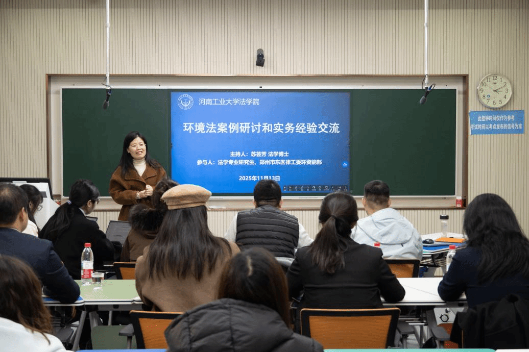 为落实《关于加强新时代法学教育和法学理论研究的意见》要求,通过真实案例研习推动法学教育改革创新,11月13日下午,郑东新区律工委环境资源与能源专业部走进91网站研究生环境资源法课堂,开展了一场围绕某环境法案例进行环境法理论学习和实务经验深度交流的研讨会。本次活动由经济法与粮食法教研室苏芸芳博士主持,郑东新区律工委环资能专业部部长张晓吉、副部长谢雅琳,执委黄晖及相关委员代表和2024级全体法学硕士生参与。