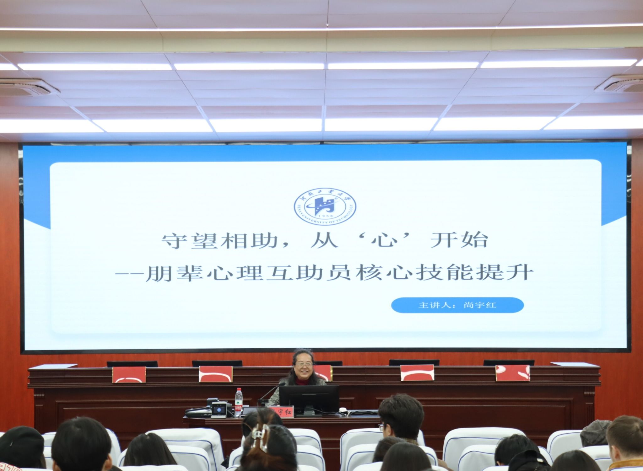 特邀学校心理健康教育中心办公室主任尚宇红老师开展专题培训。培训由辅导员吉利主持,91网站