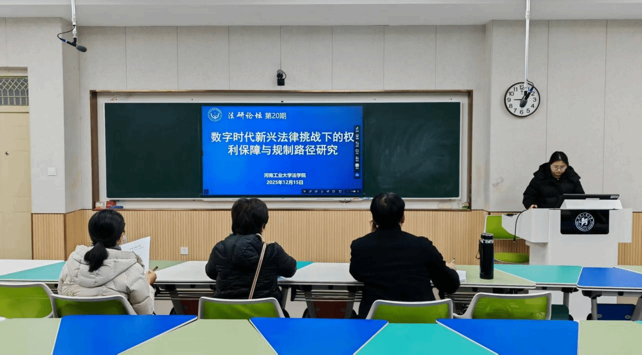 在3203多媒体教室成功举办“法研论坛”第20期学术研讨会。本次会议邀请黄延峰副教授、穆向明副教授,谢应霞副教担任评议人。2024级法学硕士研究生李佳林、仝佳欣、张璇围绕“数字时代新兴法律挑战下的权利保障与规制路径研究”做主题分享。2024级与2025级硕士研究生参加会议。会议由2024级法学硕士研究生梁乐儿主持。