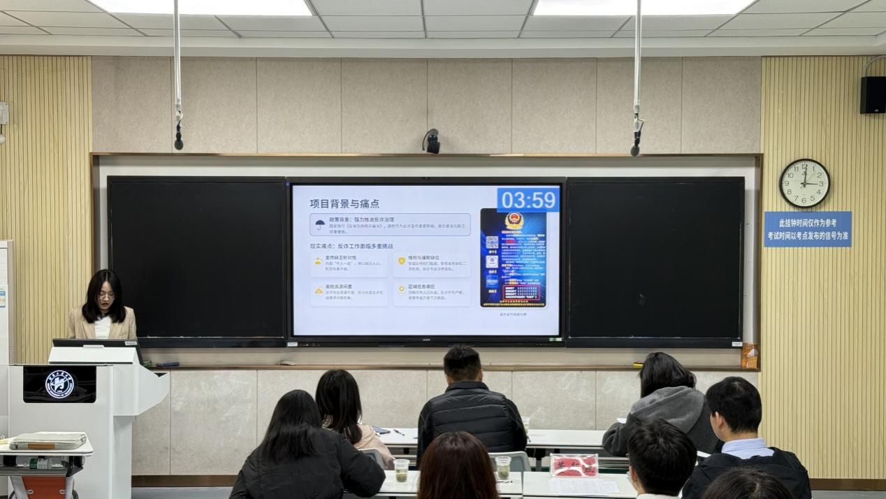 高度重视,通过广泛宣传、精心组织,充分调动学生的参赛积极性,吸引众多学子踊跃参与。初赛现场,9支参赛团队围绕反诈宣传、听障人士权益保护、法治教育革新等多个角度,全面展示了专业特色与实践活动融合的丰硕成果,评委老师们从赛事评审的专业角度,逐一进行细致点评、给出精准指导,助力团队完善作品,优化方向。路演结束后,徐鹏飞围绕赛道方案、评审规则等方面,为参赛同学开展了详细的备赛培训,不仅帮同学们厘清了竞赛赛制、明晰了备赛逻辑,更有效激发了大家的参赛热情,为后续高效备赛提供了有力指导。